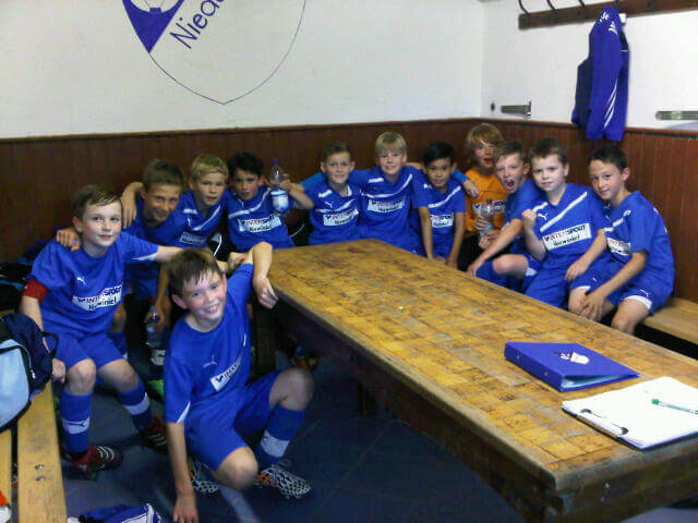 Bissig eroberten unsere Verteidiger Tobias Dott und Luka Münch viele Bälle und über Philipp Kesselheim, Tim Kreuter und Kjell wurden die nächsten Chancen kreiert. Nach schönem Querpass von Tim erhöhte Kjell in der 8. Minute auf 2:0. Man ließ dem Gegner weiter wenig Raum. Die Angriffsbemühungen der Gäste verpufften schnell, so dass es für Keeper „Magic“ Magnus Augst ein eher ruhiger Nachmittag war. Die Trainer-Uhr zeigte Minute 18 an, als Philipp nach feiner Einzelaktion und mit tollem Schuss auf 3:0 erhöhte. Die eingewechselten Nils Pompetzki, Andre Mangelmann, Linus Sievers, Lars Schmitt und Nicklas Schmidt fügten sich mit viel Einsatz in die Partie ein. So konnte Tobias kurz vor der Halbzeitpause das sehenswerte 4:0 erzielen. Auch in Halbzeit Nummer 2 zeigte sich die E-Junioren des Trainerteams Weßler/Kesselheim hellwach. Anpfiff, Mülheim-Kärlich II steht, Kjell geht. Und schließt sein Dribbling mit der 5:0 Führung ab. Blitztor nach 7 Sekunden. Damit war die Partie früh entschieden und die Luft etwas raus. Die Gäste bemühten sich zwar weiter, kamen aber zu keiner nennenswerten Chance. Spielerisch ließ dann auch die Heimmannschaft etwas nach. Ließ man den Ball dann doch laufen, kam man prompt wieder zu tollen Chancen. Tim und Tobias hatten mit Fernschüssen etwas Pech und wieder Tim konnte eine schöne Einzelaktion nicht verwerten. 8 Minuten vor Ende der erzielte Kjell den 6:0 Endstand. Fazit: Gelungener und vielversprechender Start der E-Jugend nach einer kurzen aber intensiven Vorbereitungsphase.