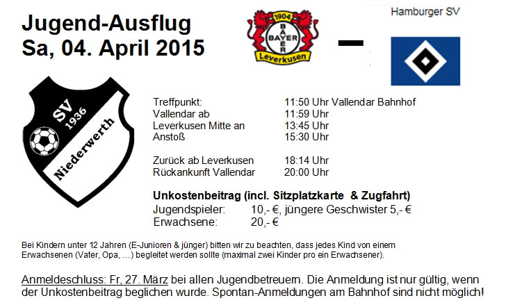 Jugend-Ausflug am 04. April nach Leverkusen