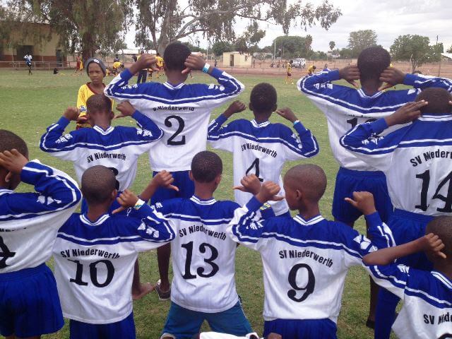 Denn bevor ich meinen Freiwilligendienst gestartet habe, hat der SV Niederwerth mir drei Trikotsätze gesponsert, die ich in einem extra Koffer mit nach Namibia genommen habe. Als ich am Samstag auf den Sportplatz gekommen bin und die Trikots, Hosen und Stutzen ausgepackt habe, war die Begeisterung groß. Ich konnte in ganz viele strahlende Kinderaugen schauen, die ihr Glück gar nicht fassen konnten. Sie waren sehr stolz wie richtige Profis aufzulaufen und ein echtes Trikot mit eigener Nummer zu tragen. Die Trikots haben auch gleich ihre Wirkung gezeigt, denn das erste Spiel wurde mit einem souveränen 2:1 gewonnen und im zweiten Spiel konnten die neuen 1936er mit einem 3:0 glänzen. Mit diesen starken Ergebnissen ging die Mannschaft in das erste Spiel am Sonntagmorgen und musste sich dabei aber mit einem 0:1 geschlagen geben. Doch wie auch die Fußballerinnen und Fußballer der Insel ließen sich die Jungs nicht entmutigen und konnten sich in dem letzten Spiel ein 3:2 erkämpfen. So hat das besondere Turnier mit der Unterstützung von dem weit entfernten Niederwerth ein erfolgreiches Ende gefunden. Das ganze Team hatte unheimlich viel Spaß mit den Trikots und sie können es schon gar nicht mehr erwarten das wieder in den blau-weißen Farben zu spielen. Ich möchte mich, auch im Namen der Kinder, von ganzem Herzen beim SV Niederwerth für diese Spende bedanken! Damit hat der Verein einmal mehr seine gute Seele gezeigt und für viel Freude gesorgt. Ich freue mich schon in drei Monaten wieder für den SVN spielen zu können.