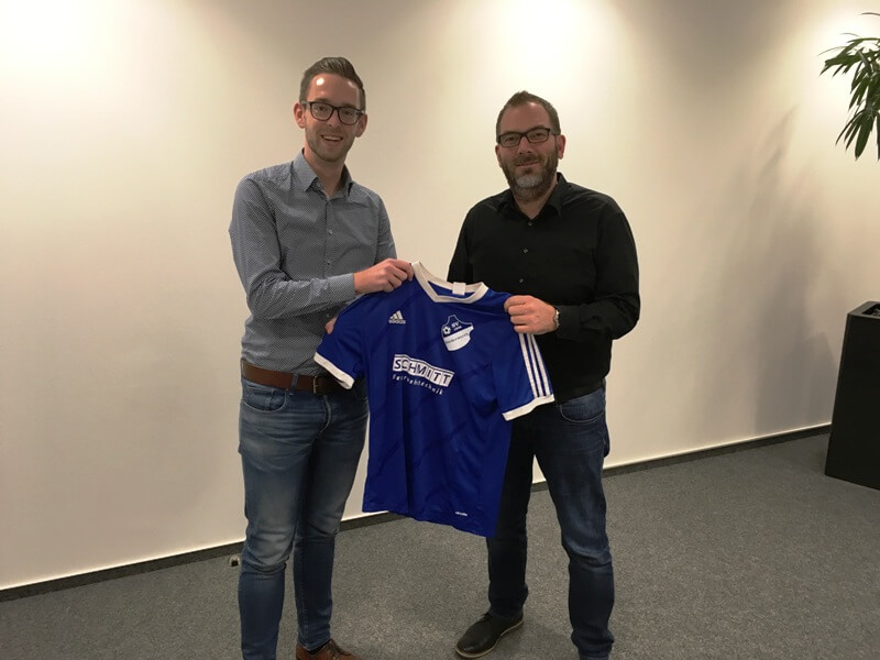 Im November fand die offizielle Trikotübergabe vor Ort bei der W.Schmitt GmbH in Neuwied statt. Symbolisch überreichte Geschäftsführer Daniel Schmitt SVN-Vorstandsmitglied Matthias Klöckner den neuen Trikotsatz. Als Dankeschön erhielt Herr Schmitt das aktuelle Team-Foto der Zweiten Mannschaft und die herzliche Einladung, einen Heimspielsonntag auf der Niederwerther Südspitze zu verfolgen.